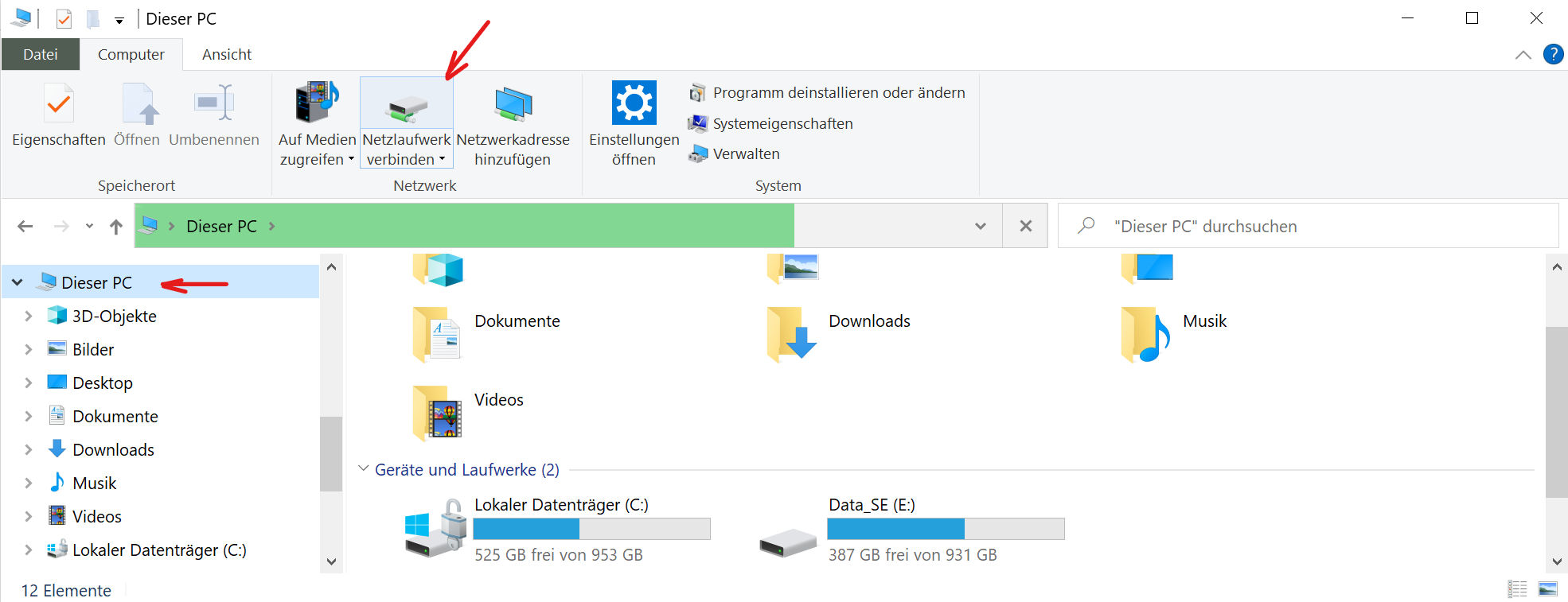 Schritt 2: Windows Explorer öffnen und Netzwerklaufwerk verbinden: