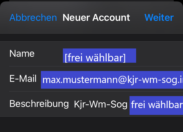 Beschreibung: [frei wählbar] - dies wird in deiner App angezeigt - z. B. "KJR-Mails"