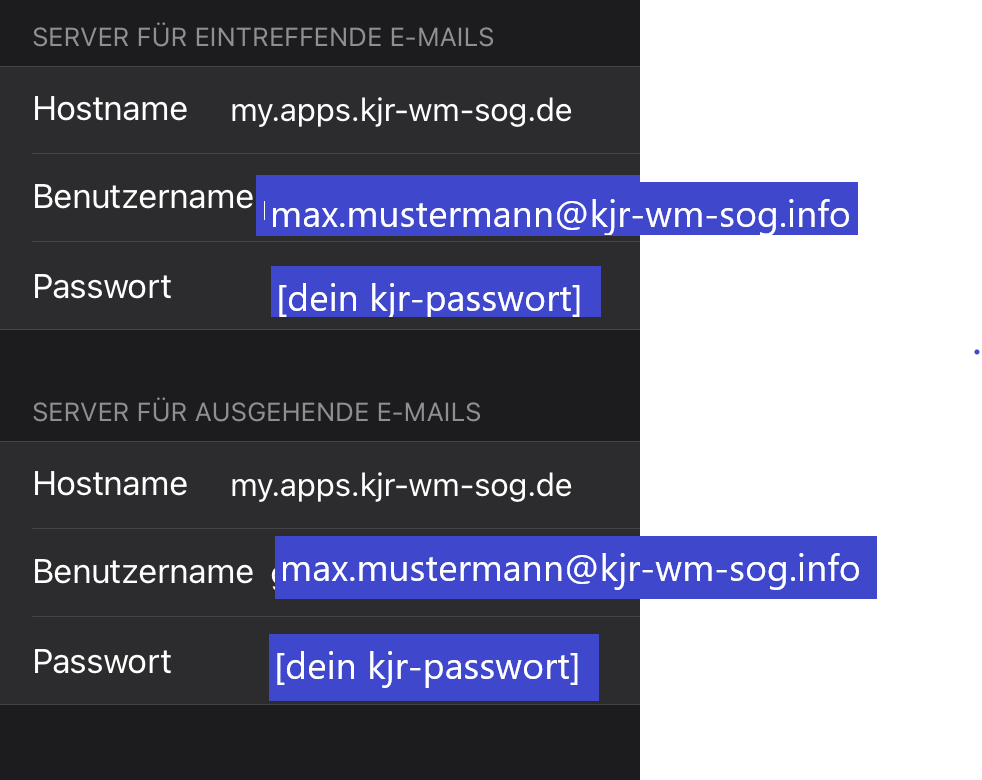 Benutzername: max.mustermann@kjr-wm-sog.info