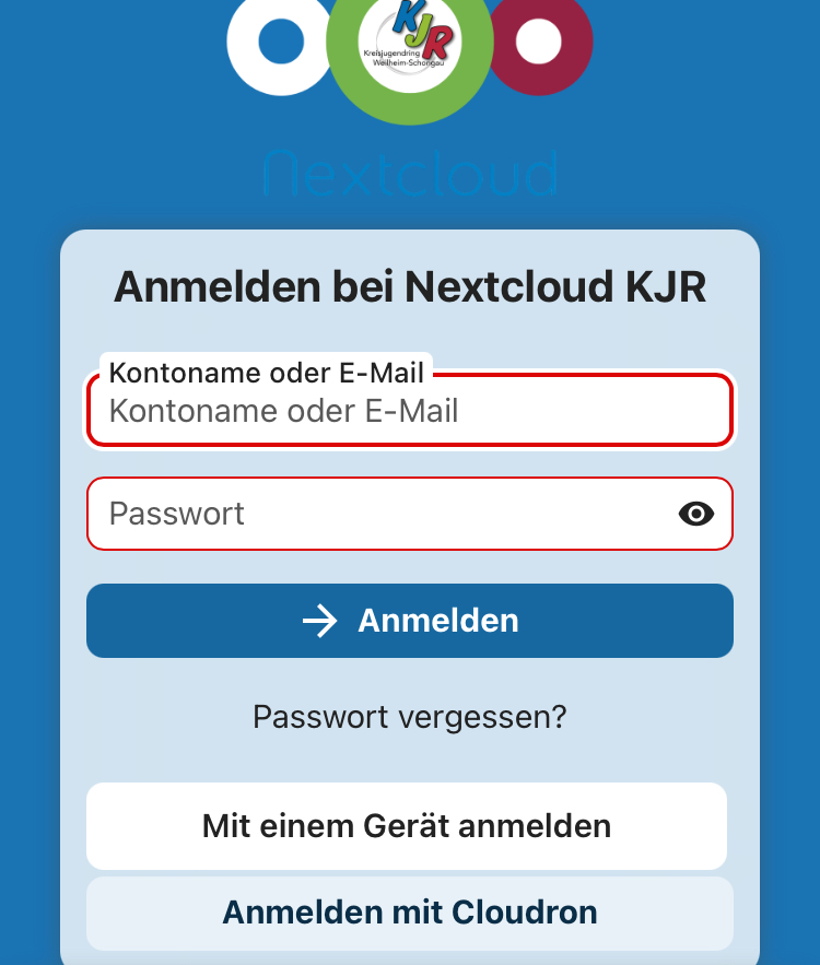 Entweder du bist schon unter Zugang und Login zu KJR-Apps eingeloggt oder du gibst die entsprechenden Anmeldedaten ein